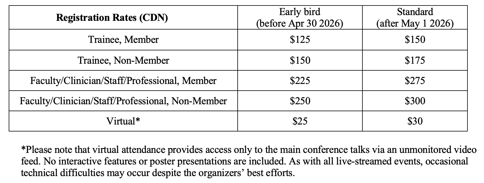 If you have any questions please contact the organizing committee: Stephen Renaud (srenaud4@uwo.ca), Gerry Giesbrecht (ggiesbre@ucalgary.ca) and Maria Ospina (maria.ospina@queensu.ca).
