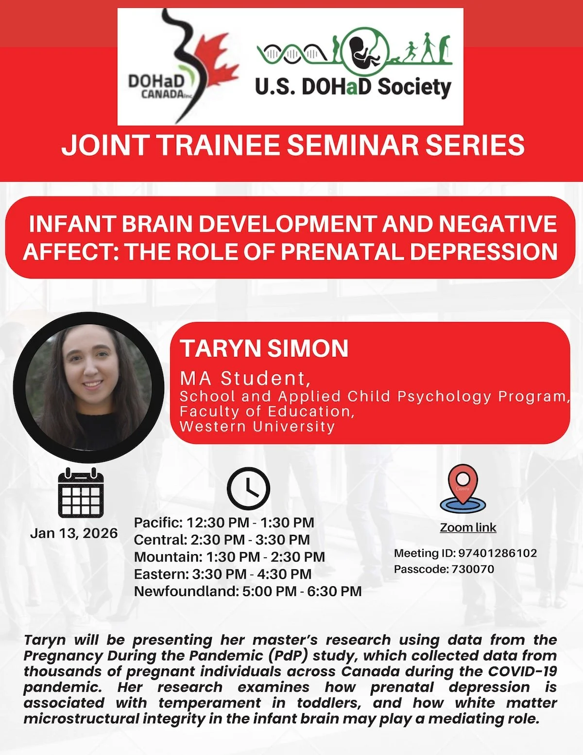 US x Canada DOHaD Trainee Tuesday: Jan 13, 2026: DOHaD Trainee Seminar Series, a collaboration. between US DOHaD & DOHaD Canada:
